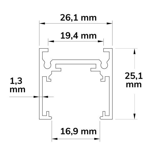 Track48 paviršinis plokščias bėgelis, juodas, 200 cm, 4 polių, su galiniais dangteliais ir apsauginiu dangteliuIšankstinis užsakymas